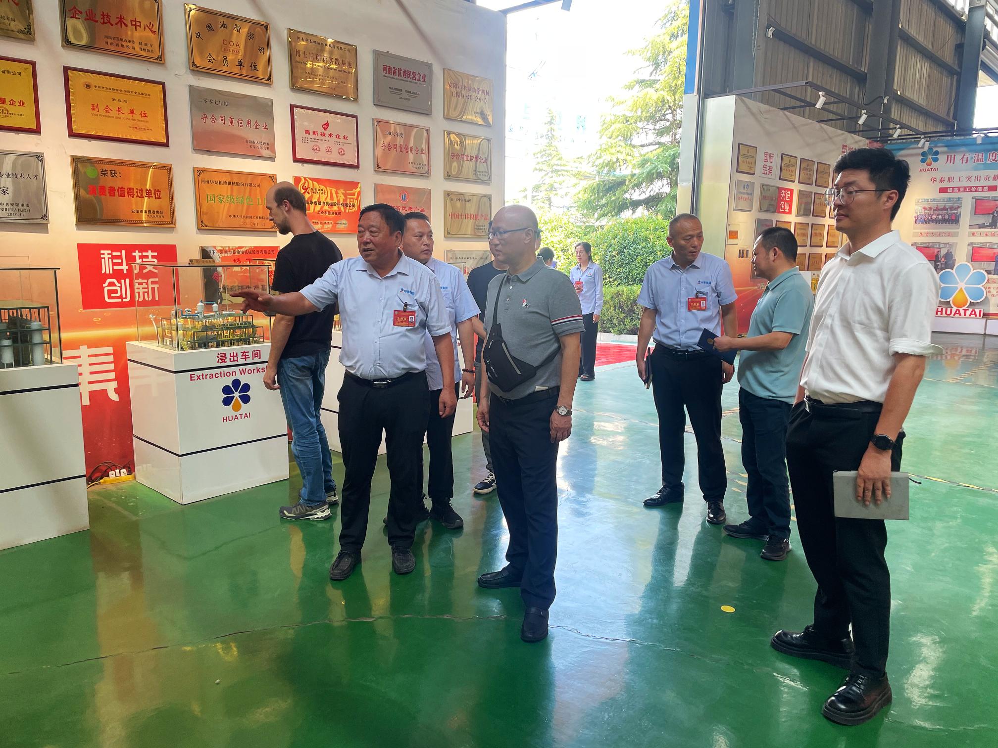 7月29日,集團(tuán)公司副總經(jīng)理、振興集團(tuán)總經(jīng)理?xiàng)钜砺赎?duì),前往河南華泰糧油股份有限公司進(jìn)行考察交流。此次考察聚焦瀘縣糧油加工基地建設(shè),就加工生產(chǎn)線(xiàn)等關(guān)鍵設(shè)備進(jìn)行深入調(diào)研和選型論證??疾靾F(tuán)一行通過(guò)實(shí)地察看、聽(tīng)取介紹、座談交流,詳細(xì)了解先進(jìn)設(shè)備性能與工藝,為瀘縣糧油加工基地的建設(shè)和后續(xù)高效運(yùn)營(yíng)奠定堅(jiān)實(shí)的技術(shù)與設(shè)備基礎(chǔ)。中咨公司、中鐵四院相關(guān)技術(shù)專(zhuān)家,農(nóng)開(kāi)公司相關(guān)人員參加。